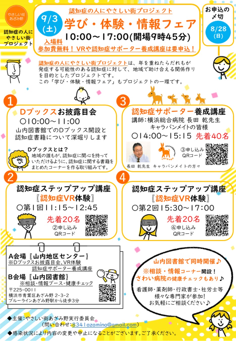 「世界アルツハイマー月間」における、認知症の人にやさしい街プロジェクト主催(東急SレイエスFCも参画)のキックオフイベントを2022年9月3日(土)開催します。いずれの会場・企画も、参加費無料です。