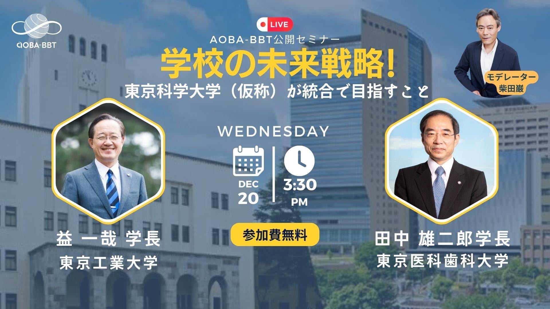 【Aoba-BBT、無料公開セミナー開催】学校の未来戦略!東京科学大学(仮称)が統合で目指すこと