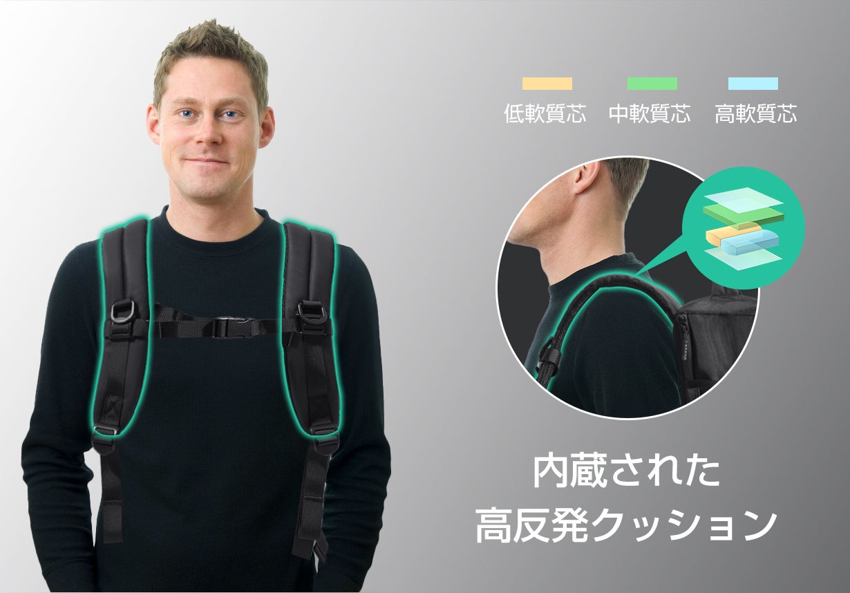 調節可能な胸ストラップはしっかりとバッグを安定して身に着けて、バッグを背中に背負ったまま両手を使って操作や活動ができるため、ハンズフリーの利便性が向上します。