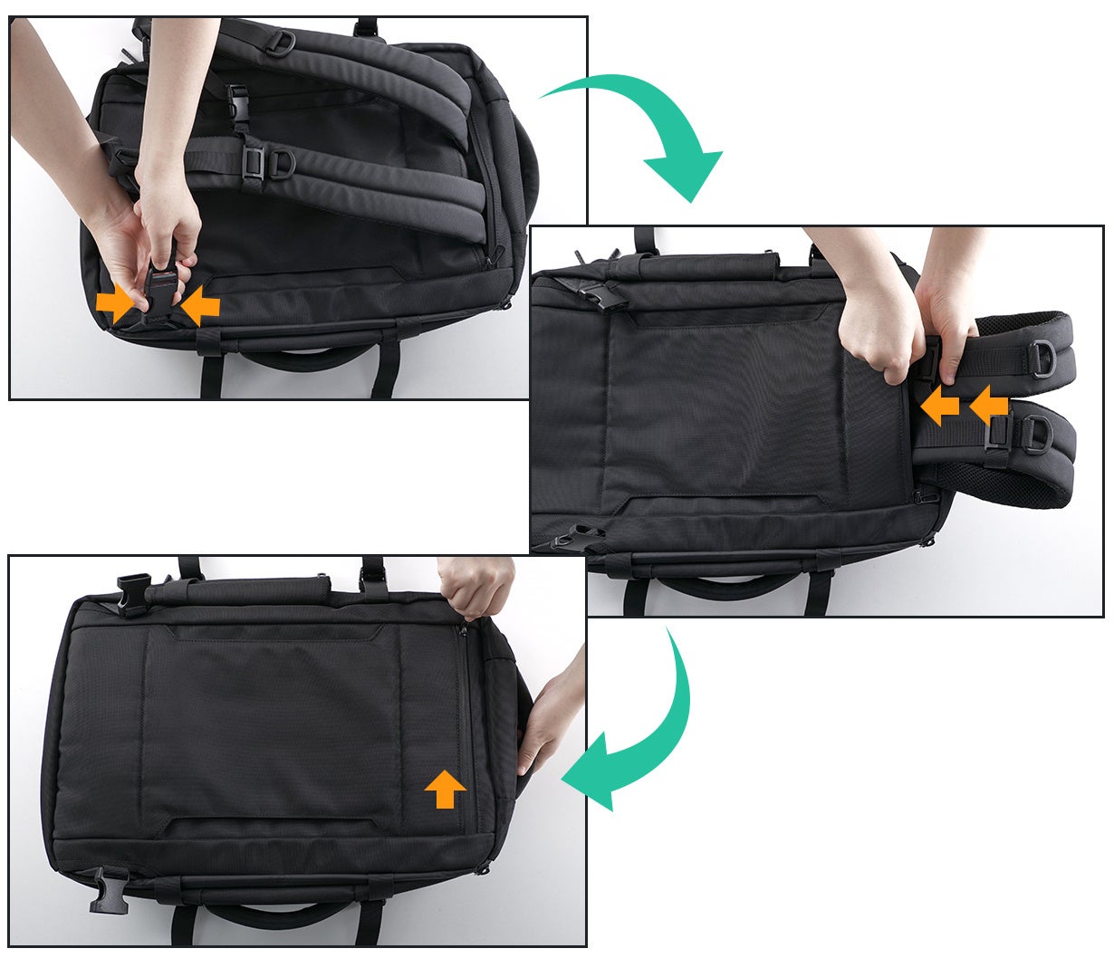 リュックのベルトを収納することで、リュックだけでなく、ビジネスバッグとしても大活躍できます。