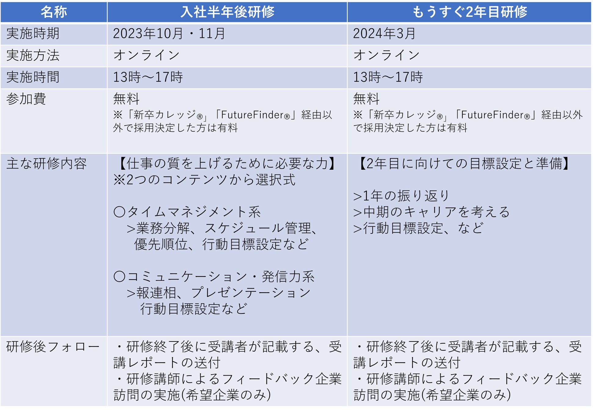 ■「入社半年後研修・もうすぐ2年目研修」概要