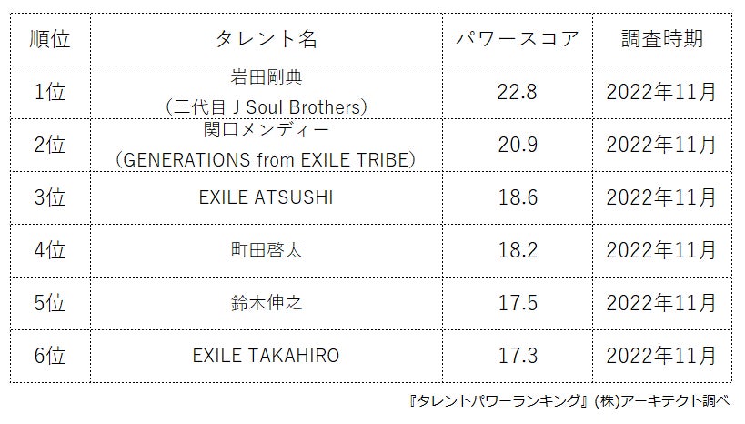 『タレントパワーランキング』がLDHに所属するタレントランキングを発表!株式会社アーキテクトがスタートさせた、WEBサイト『タレントパワーランキング』ランキング企画第198弾!!