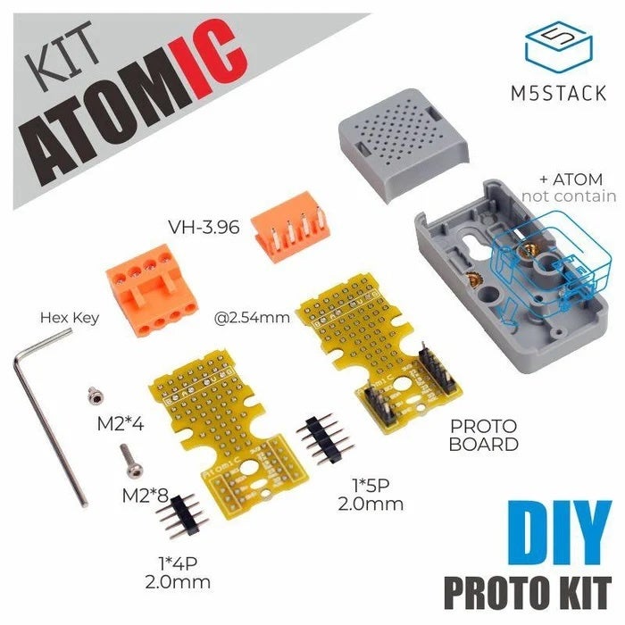 ATOMICシリーズの一例として、200 mAh充電式バッテリーを内蔵した「ATOMIC バッテリーベース」、TF(MicroSD)カードの読み取りと書き込みを可能にする「ATOMIC TFカードリーダー」、PCによる制御に比べてコストパフォーマンスの高いディスプレイ制御が可能な「ATOMIC ディスプレイベース」小規模回路や外付ハードウェアを設計するユーザに便利な「ATOMICプロトキット」などがあります。共通インターフェースによるモジュール構造を採用し、必要な機能を柔軟に組み合わせることで、省スペースかつ効率的なプロトタイプ開発を可能にします。