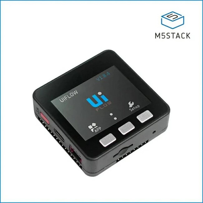 ESP32を搭載した開発キットです。Wi-FiとBluetoothを備え、ArduinoやUIFlow、MicroPythonなど多彩な環境で開発可能。30以上のモジュールと40以上のユニットを組み合わせ、迅速なプロトタイピングから製品化までを支援します。本体は上下2パーツ構成で、上部にプロセッサ、下部にバッテリーやM-Busソケットを搭載しています。