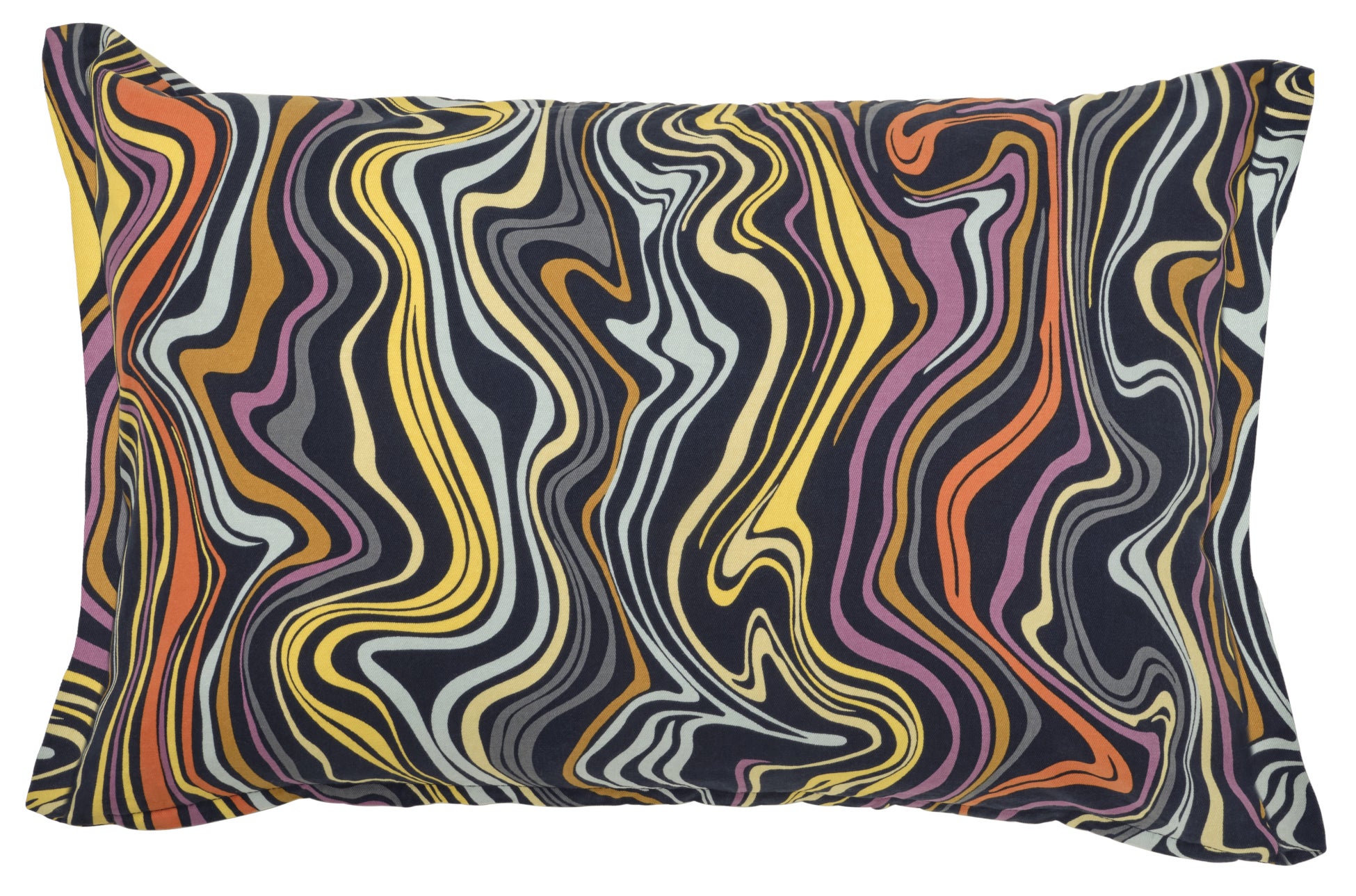 躍動感あふれる波のような模様が想像をかき立てる個性的なクッションカバー。部屋にひとつあるだけで雰囲気が明るくなり、ベージュやダークグレーのクッションカバーと合わせるとコーディネートしやすいです。
