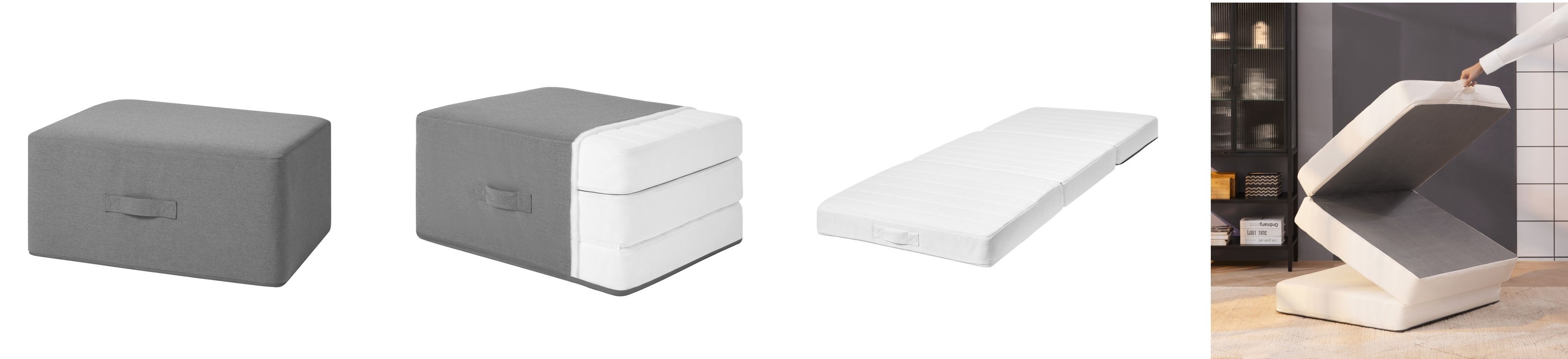 3つの機能がこれ1つに。リビングルームの予備のチェア、またはお持ちのソファの近くにおいて足置きとして最適なだけでなく、快適なゲスト用ベッドにも早変わりします。 十分なスペースがない場合に理想的なアイテムです。専用のケースは持ち手付きなので移動も簡単です。