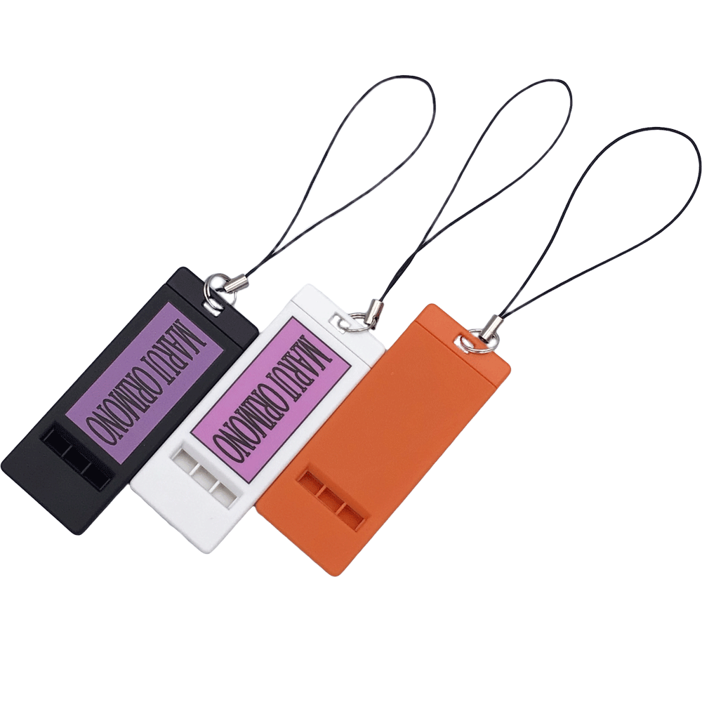 薄型で持ち運びやすいホイッスルにオリジナルプリントができます。