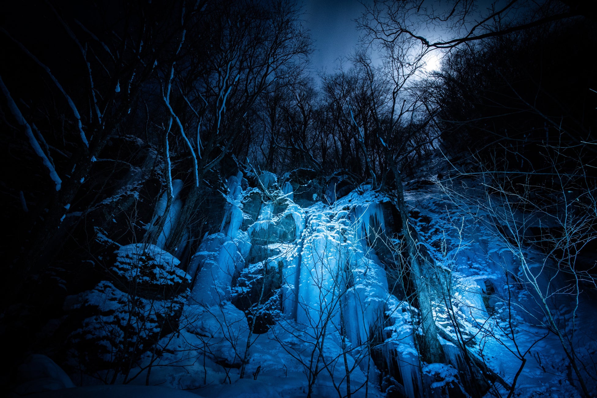 夜闇に浮かび上がる氷の神秘と光の演出が、幻想的な没入体験を生み出します。