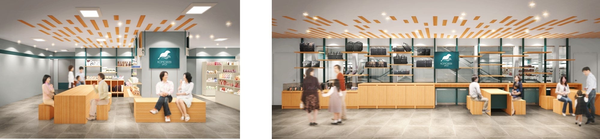 お買い物の合間に休憩できるラウンジスペースをご用意しました。商品のトライアルなど、くつろぎながら新しいモノとの出会いが楽しめる空間です。オープン時は、人気のコスメアイテムをお試しいただけます。