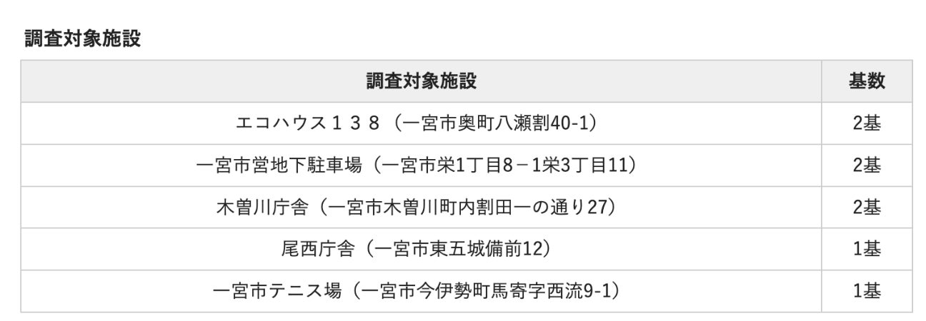 2024年9月末までに設置予定で、施設利用者のみが利用できます。※以下の施設は、現時点での候補施設であり、導入が確定した施設ではありません。