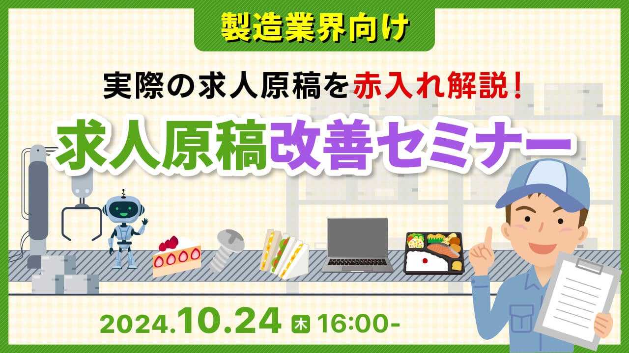 【製造業界必見】貴社の求人原稿に赤入れします!求職者に選ばれる原稿作成・改善のポイントをセミナーで解説|天職市場(キャムコムグループ)
