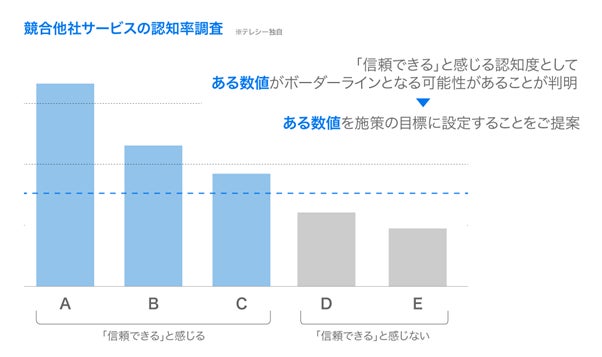 そこでテレシーからは、今回の調査結果をもとに施策の目標とするべき認知度の具体的な数値を設定し、達成までのアプローチをご提案させていただきました。