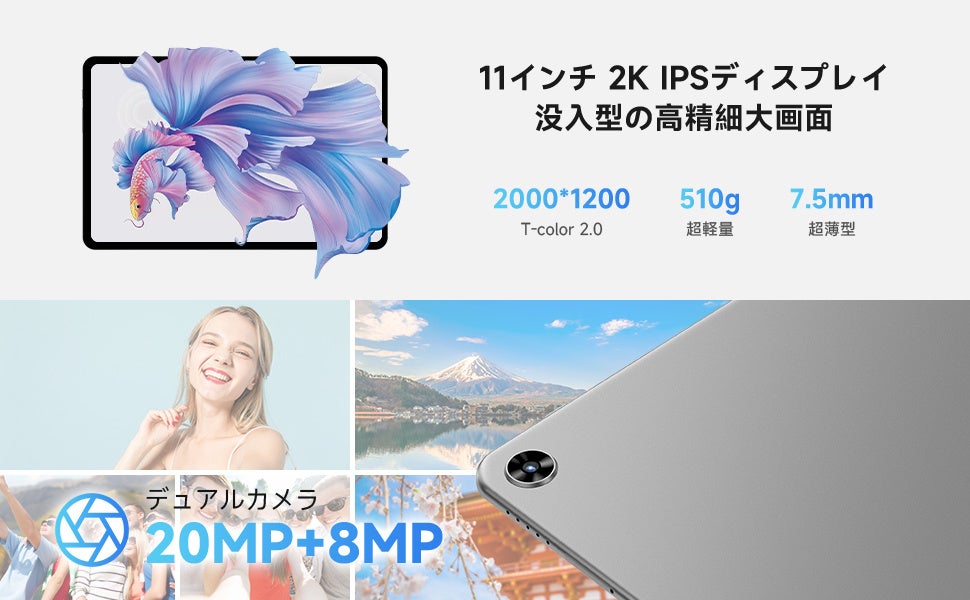 更に大きな11インチ2kのスディスプレイを使用して、より広い画面領域を提供できます。TDDIテクノロジーが利用されたディスプレイは、タッチセンサーをLCDの既存の構造に統合します。反射を減らし、タッチ応答性を向上させます。また、T-Color 2.0カラー最適化アルゴリズムにより、より鮮やかでリアルな色が表示されます。