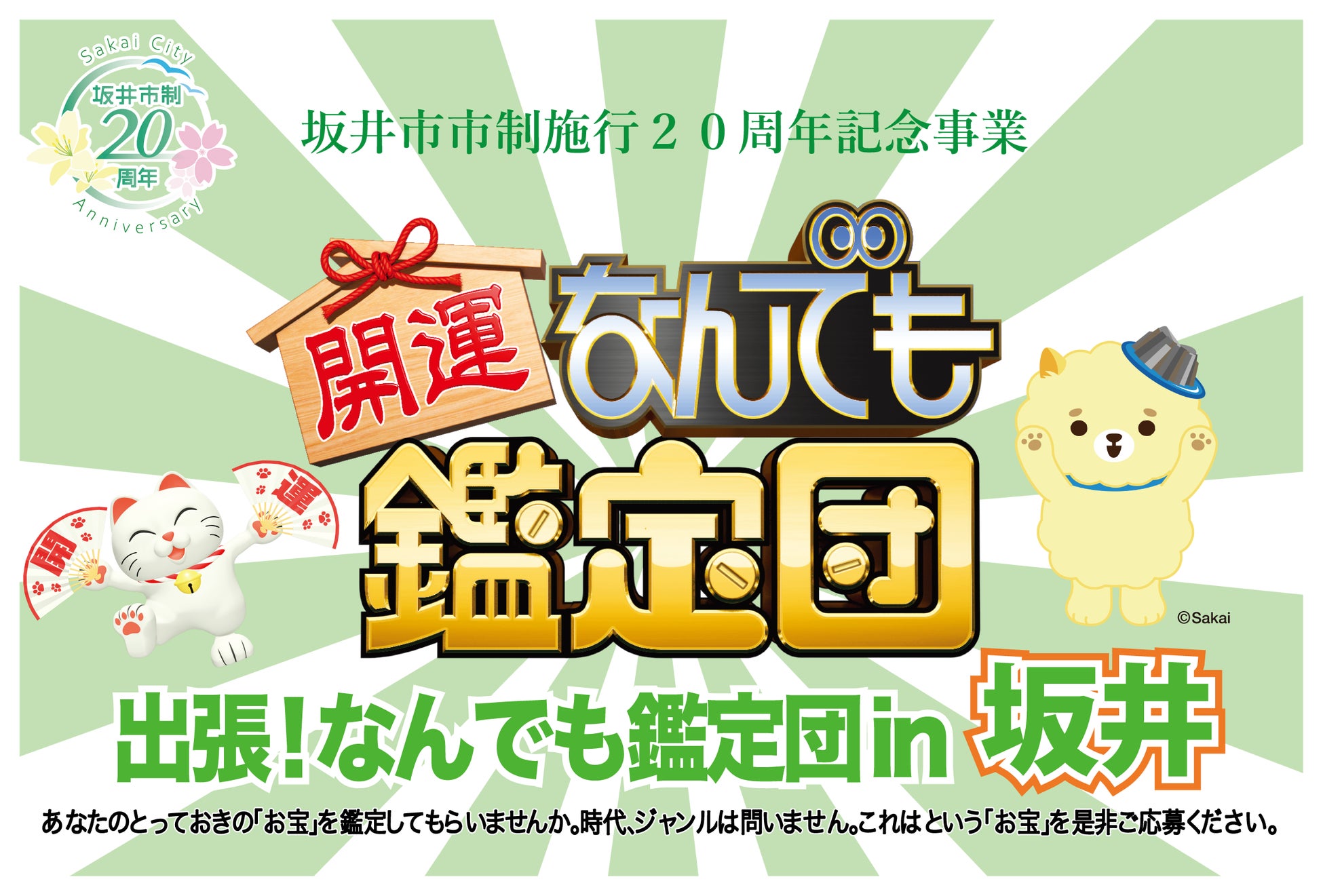 市制施行20周年を記念して、テレビ番組「開運なんでも鑑定団」の出張鑑定「出張!なんでも鑑定団in坂井」の公開収録が、8月2日(日)にハートピア春江で開催されます。開催に伴い、当日会場で鑑定する「お宝」及び公開収録の観覧者も募集します。