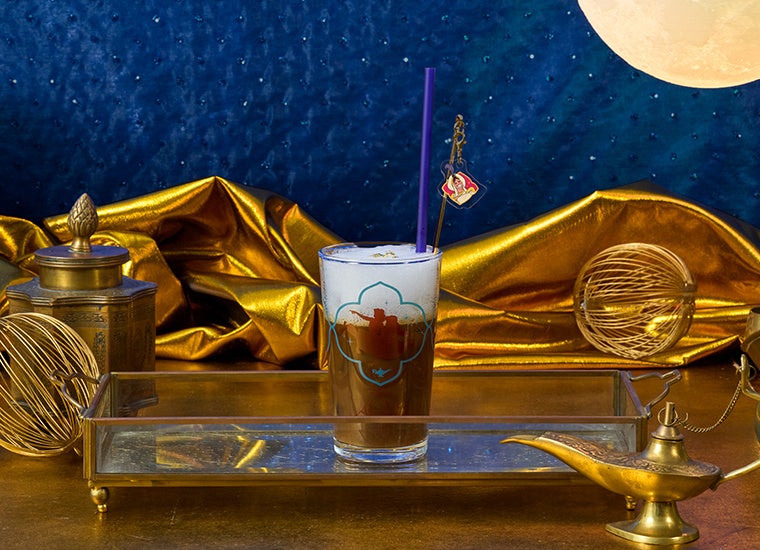魔法の絨毯に乗った「アラジン」と「ジャスミン」が夜空をはばたきながら心を通わせるシーンをコンセプトにしたカフェでヘルシーでフォトジェニックなメニューをお楽しみください!