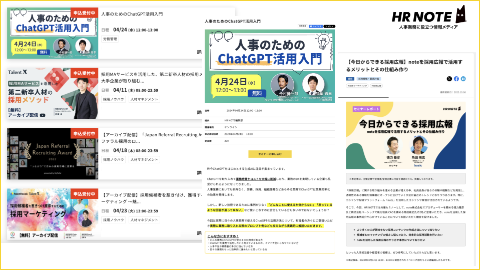 人事メディアHR NOTEが、「セミナー集客サービス」「資料ダウンロードサービス」をリニューアル〜HR NOTE上で無料掲載・集客が可能に〜