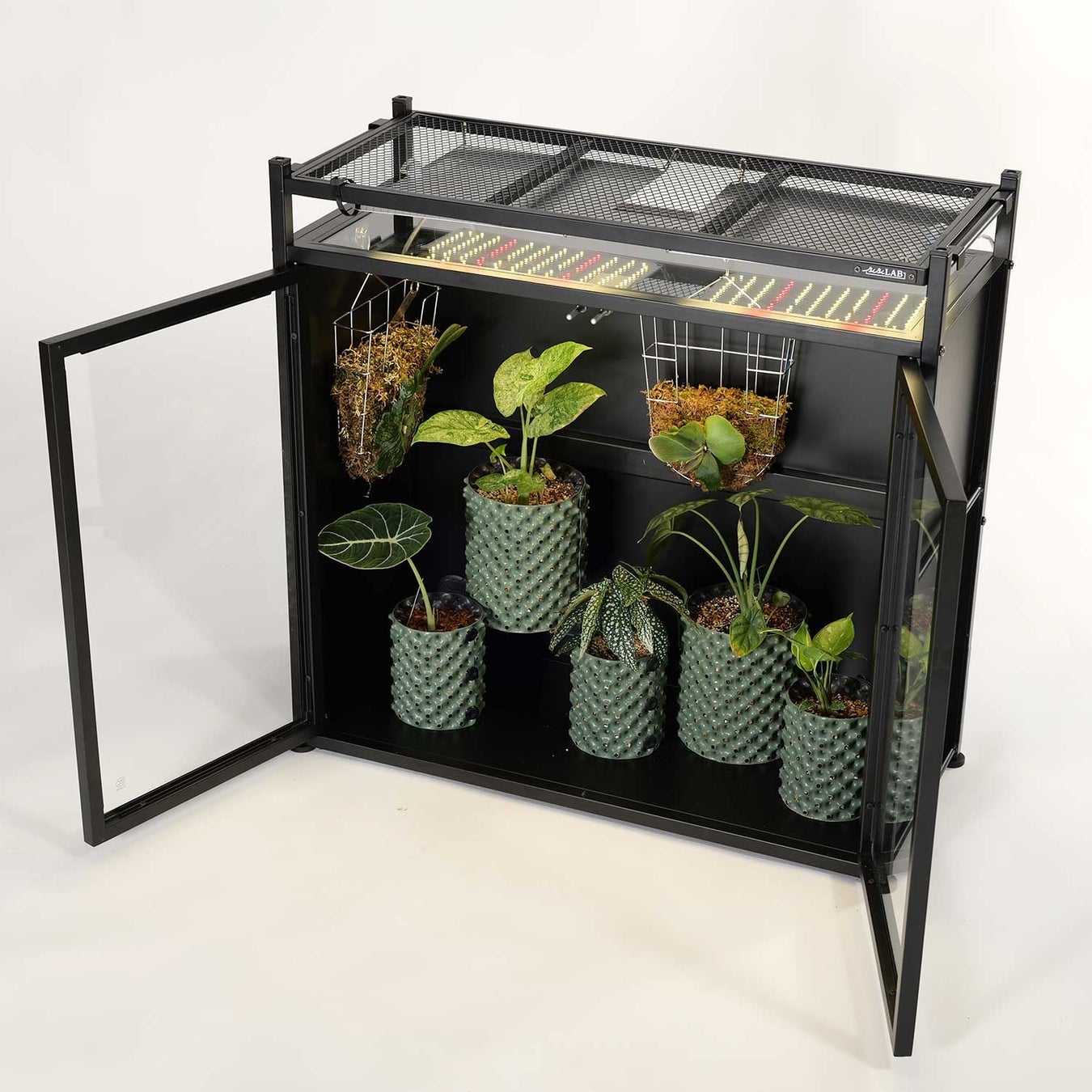 【温室×インテリア】観葉植物の冬越しをおしゃれに叶える!育成ライト対応、キャビネットタイプのガラス温室が発売
