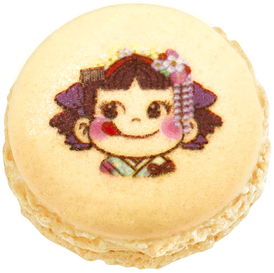 京都府産ほうじ茶クリームをサンドした西洋菓子舗 不二家ロゴがプリントされたマカロンと、京都府産宇治抹茶クリームをサンドした舞妓ペコちゃんがプリントされたマカロンの2個入りです。
