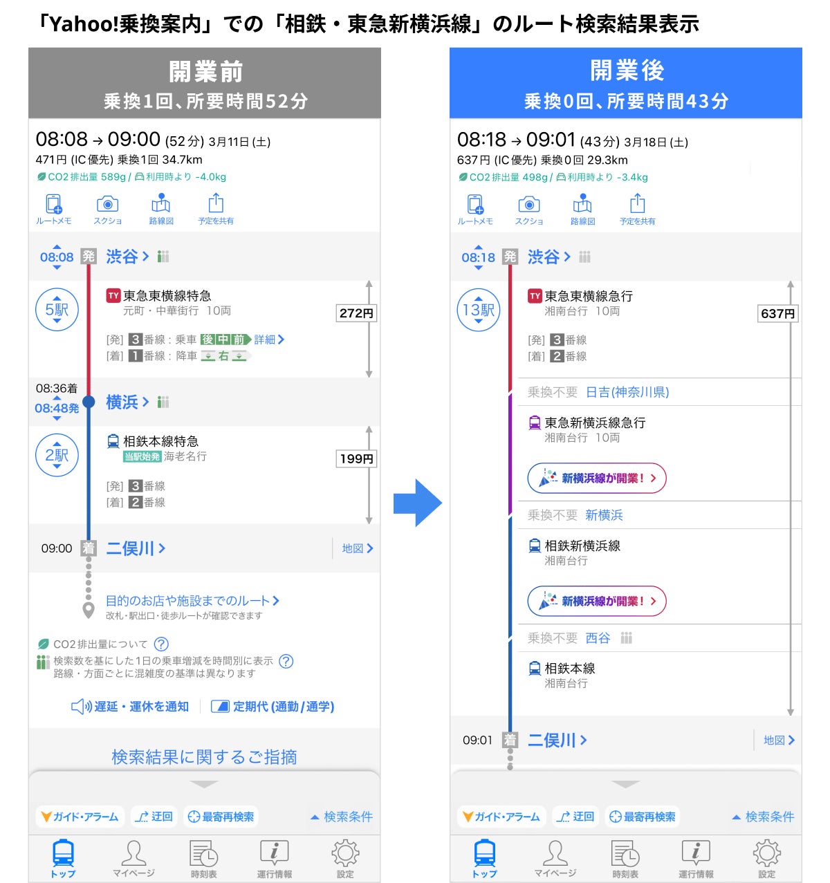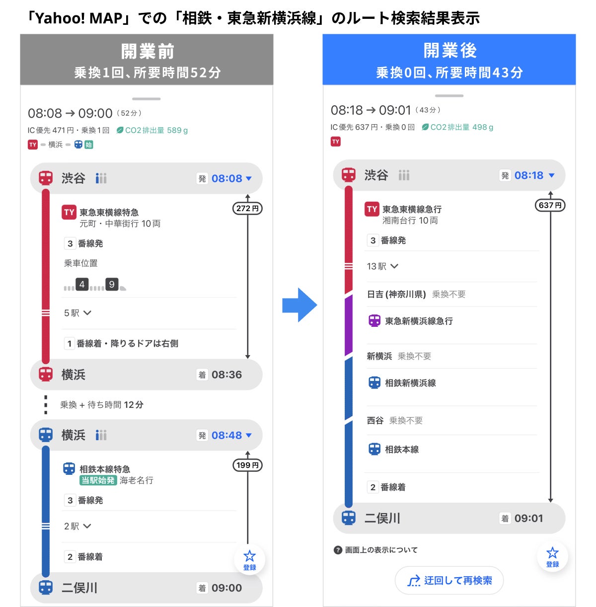 ■「相鉄・東急新横浜線」のルート検索結果表示