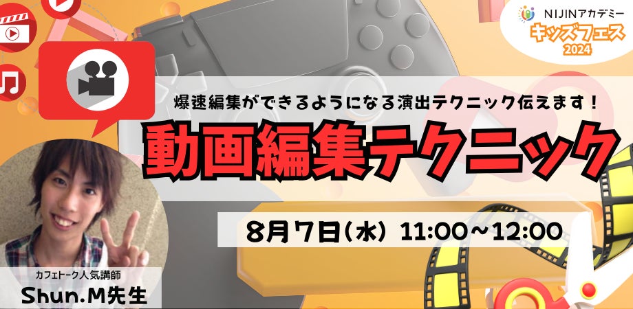 不登校オルタナティブスクール小中一貫校NIJINアカデミーを運営する株式会社NIJIN(本社:東京都江東区、代表取締役:星野達郎)は、2024年8月7日、オンライン習い事「カフェトーク」の人気講師Shun.M先生を講師に迎え、小中学生を対象とした動画編集の特別授業をメタバースにて開催いたします。