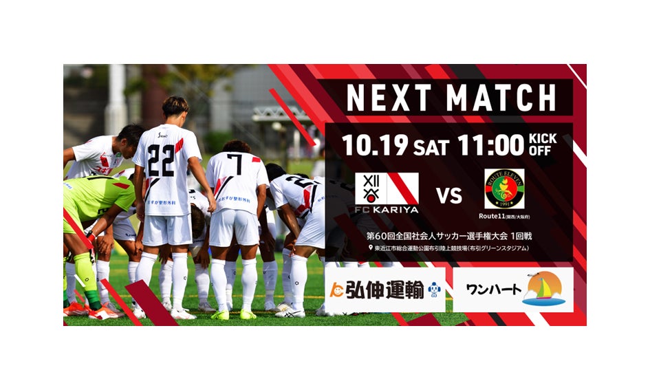 昨シーズン、佐賀県にて行われた第59回全国社会人サッカー選手権大会で初優勝を掴んだFC刈谷が10/19(土)から始まる第60回全国社会人サッカー選手権大会1回戦 FC刈谷対Route11(関西代表)の一戦が行われます。