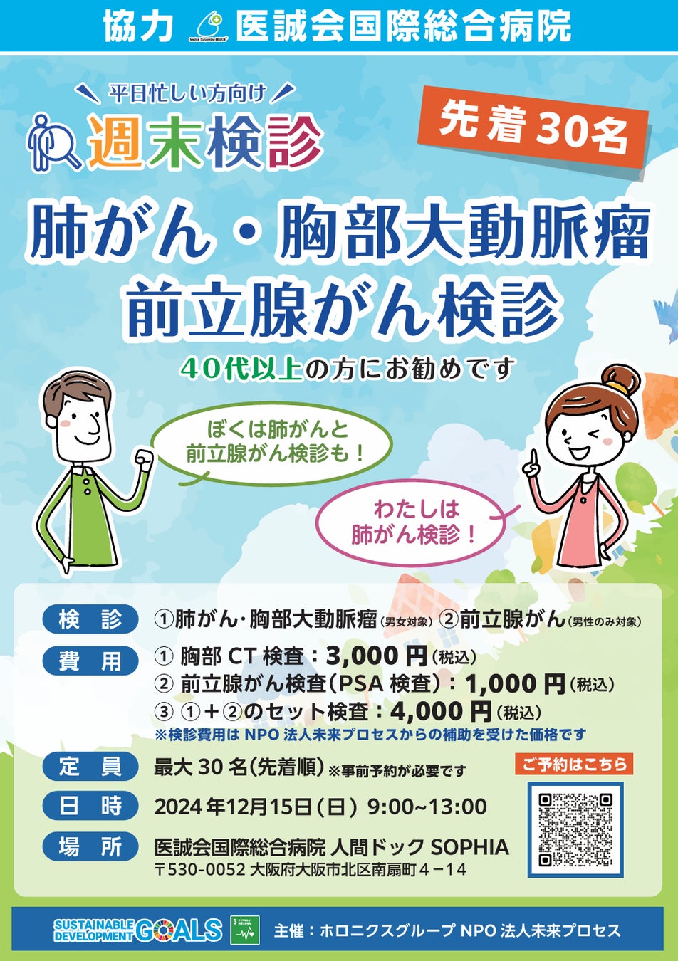 医療法人医誠会(本社:大阪府大阪市、代表者:谷 幸治)は、平日忙しい方に向けて、2024年12月15日(日)に医誠会国際総合病院にて「週末検診」を開催します。本イベントでは、肺がん・胸部大動脈瘤検診や前立腺がん検診を手頃な価格で受けていただけます。