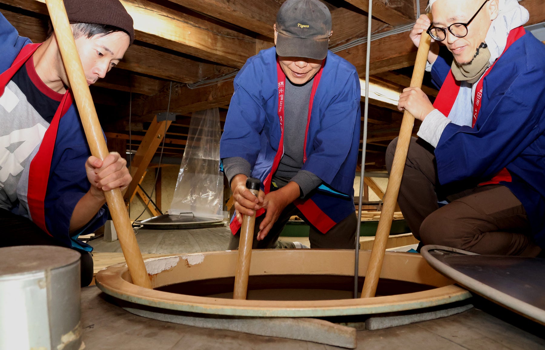 江戸時代から銘酒の産地として知られる高槻市西部の富田地区で、冬の風物詩の新酒造りが本格化。同地区にある安政3(1856)年創醸の清鶴酒造株式会社(同市富田町6、石井清祐代表取締役)の酒蔵では、杜氏(とうじ)が伝統の酒造りに精を出しています。