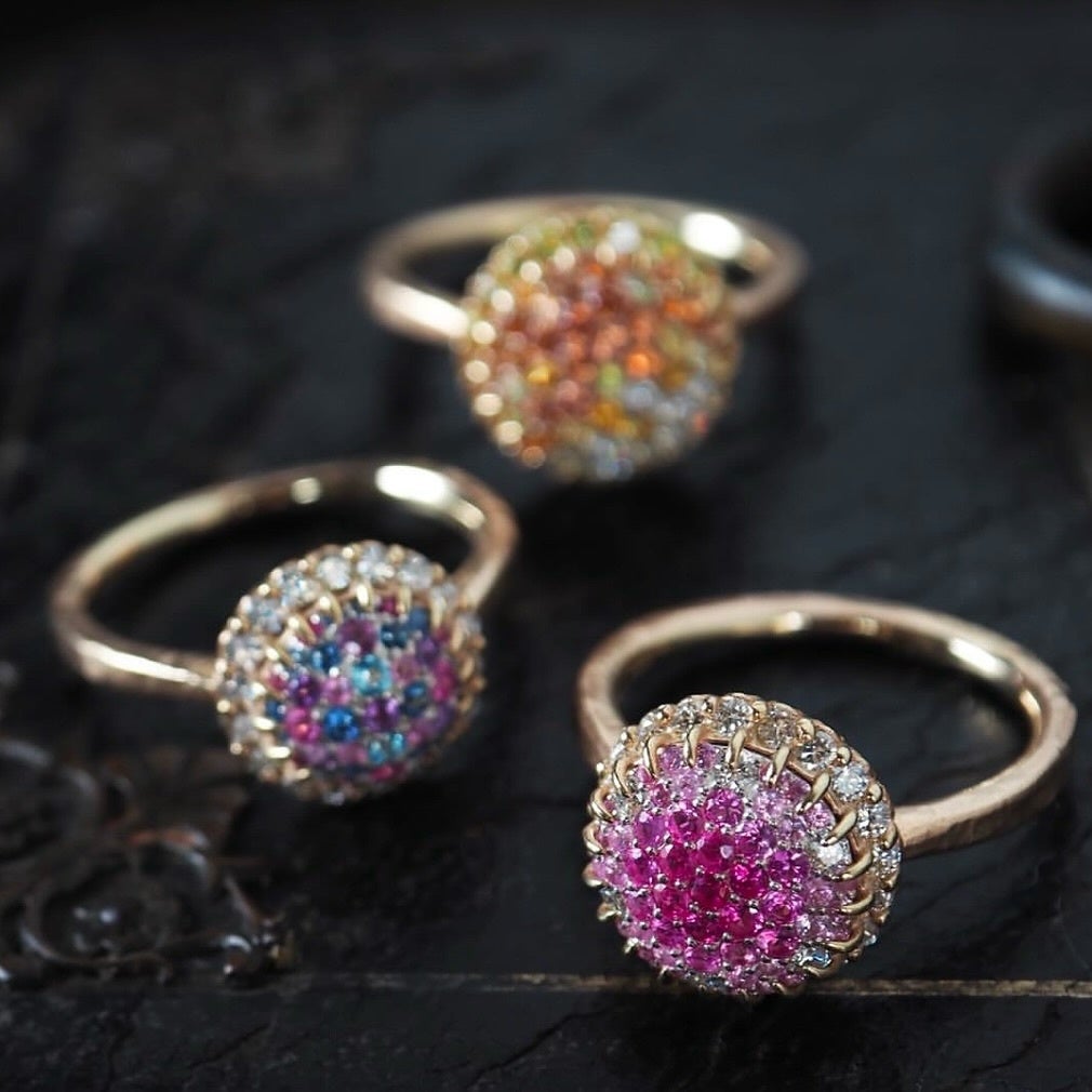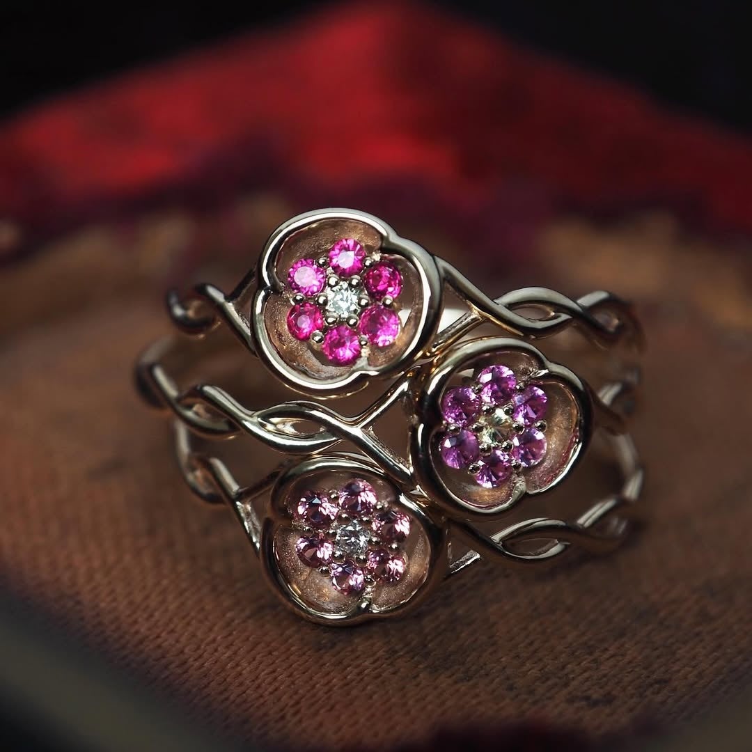 サファイアやルビーならではの眩い輝きと発色の良い彩りが加わることで、デザインごとの繊細さや愛らしさがいっそう際立ちました。