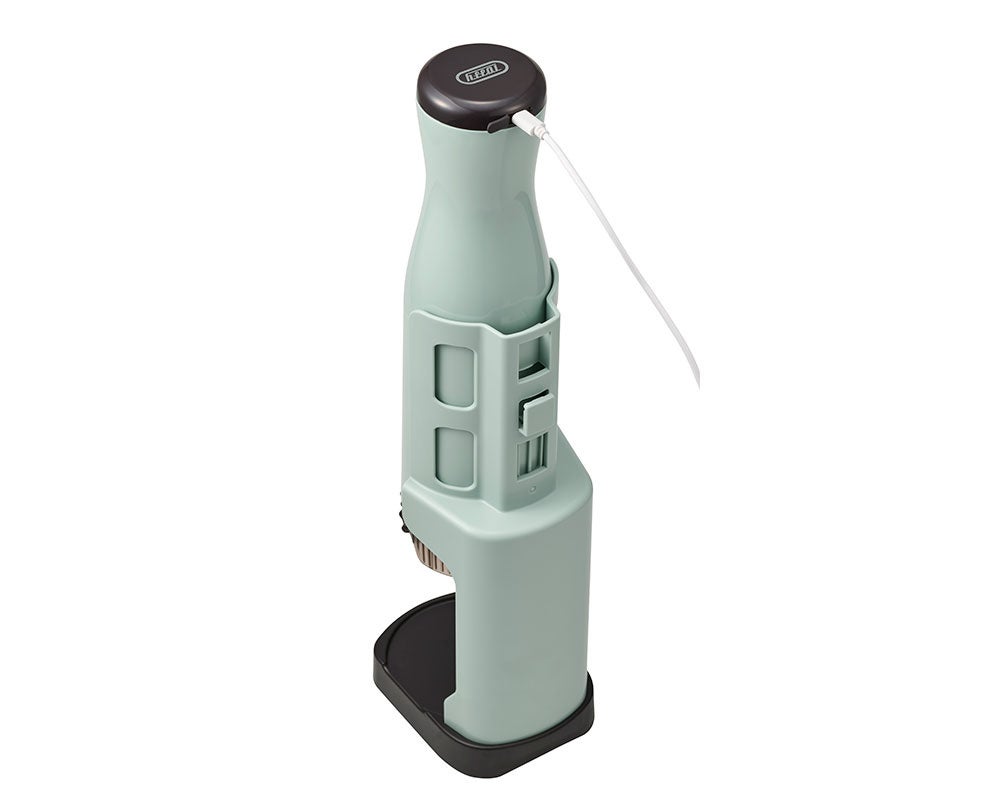 充電式のコードレスタイプなので、コードを取り回しする煩わしさもなく、場所を選ばずに使用できます。ハンディタイプの特長を活かし、上下左右に制限なく、高さのある大盛りのかき氷を作ることも可能。また、冷製パスタやサラダの仕上げにトッピングするなど、料理の用途にも活躍します。さらに、専用スタンドにセットすれば、卓上に置いて使うことができます。器の高さに合わせて2段階で高さを変えられるので、背の高いグラスも◎