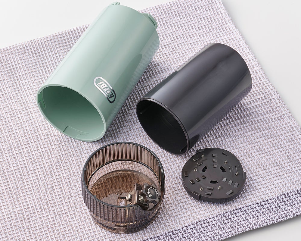 Toffyシリーズで毎年好評のかき氷器が、EC限定販売の新色“グレージュ”を携えて今年も登場!刃の調節ダイヤルで氷の細かさを無段階に調節することができ、ふんわり口どけなめらかなかき氷から、定番のさらさらとしたかき氷まで、お好みの食感のかき氷を作ることができます。牛乳やジュースなどを凍らせた味付きかき氷や、市販の冷凍フルーツにも対応。専用製氷パーツを使えば2つの味を一度に削れるハーフ氷やミックス氷も!さらに、お皿を回しながら氷が削れる“回転プレート”で、かき氷をよりきれいに盛り付けることができます。1台でバリエーション豊かなオリジナルのかき氷が楽しめます。