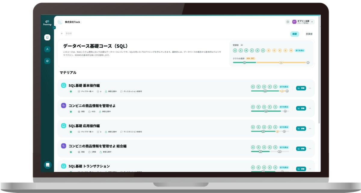 ・教材の配布を「Track Training」上でダウンロード不要で講師が一元管理