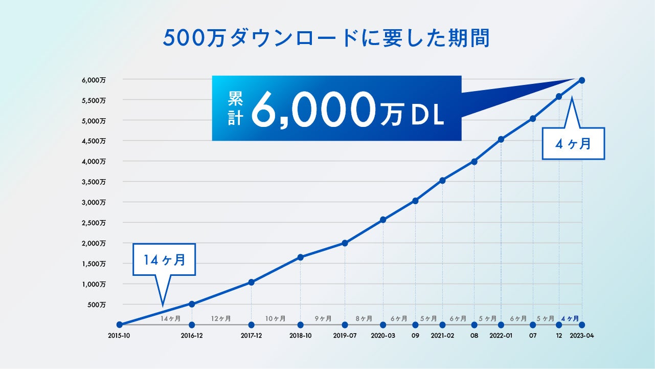 2020年3月より数か月ごとに500万DLのハイペースで伸長しており、2022年12月には5500万DL、さらに4か月後の2023年4月に6,000万DLを達成し、急速に伸長しています。