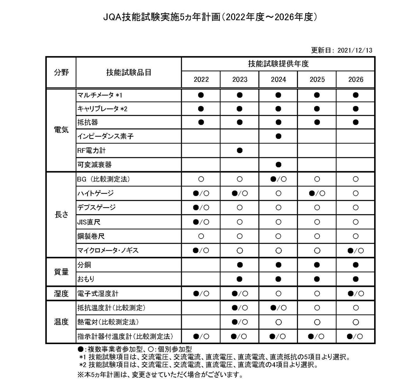 JQA「技能試験実施予定(2022年度~2026年度)」を公開