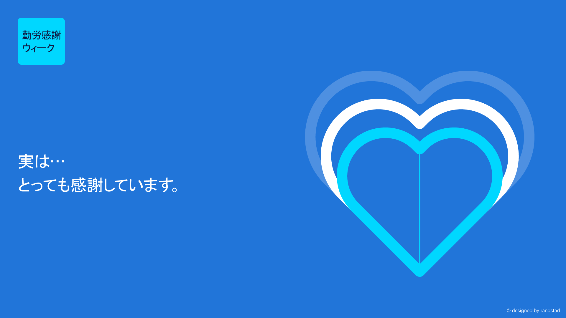 総合人材サービスを提供するランスタッド株式会社(本社:東京都千代田区 代表取締役社長 猿谷哲)は、2024年11月12日(火)~23日(土・祝)まで「勤労感謝ウィーク」と題し、働く人に、働く自分に、そしてそれを支える人たちに感謝を伝え合いましょうと呼びかけるプロジェクトを実施いたします。それに伴い、8月21日より、本プロジェクトに参加いただける企業(団体)を募集いたします。社外の複数の企業と連携する本プロジェクトは今年が2年目で、今年は新たなデザインの感謝のツール類を用意するなど、今後も様々な企画を発信する予定です。