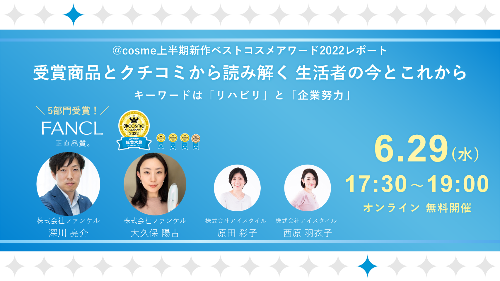 ウェビナー『@cosme上半期新作ベストコスメレポート2022 受賞商品とクチコミから読み解く生活者の今とこれから~キーワードは「リハビリ」と「企業努力」~』6月29日開催