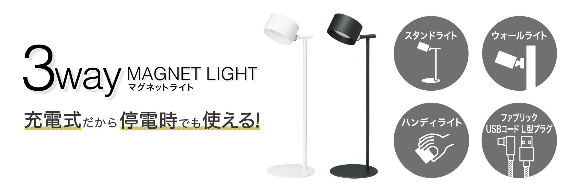 インテリア家電製品および、PCサプライ品の製造販売を手掛ける株式会社ヤザワコーポレーションは、充電式で停電時にも使える3wayマグネットライト(丸タイプ)を発売しました。