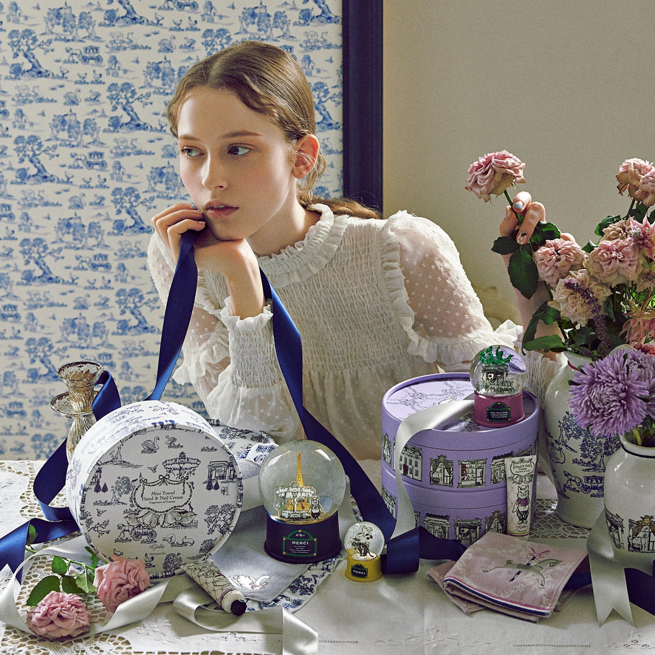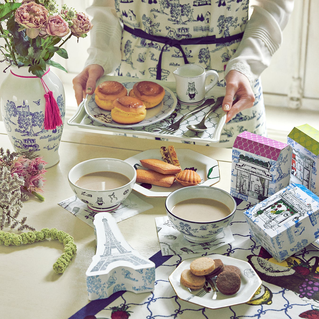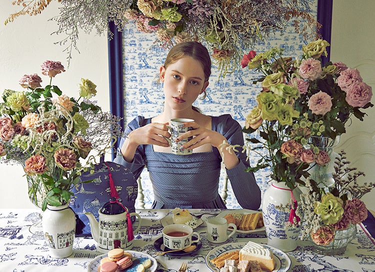 メイン画像:壁紙 ¥5,500※公式オンラインストア限定販売、マグ300ml ¥1,980※1、テーブルクロス ¥5,500※1、ティーコージー ¥2,750※1、オクタゴンプレート S ¥2,200※1、オクタゴンプレート M ¥2,420※1、フラワーベース S ¥3,300、ポット600ml ¥4,950※1、ティーカップ&ソーサー ¥2,750※1、ティースプーン ¥770※1、クリーマー ¥1,540※1、フラワーベース L ¥4,950、フラワーリムプレート M ¥2,420※1、ケーキフォーク ¥770※1、フラワーリムプレート L ¥2,750※1