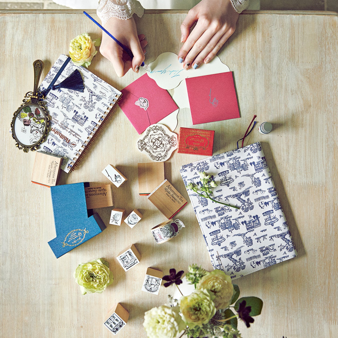 スタンプやガラスペンなどクラシックなステーショナリーアイテムをはじめ、カフェオレボウルやプレートなどのダイニングアイテムも揃いました。