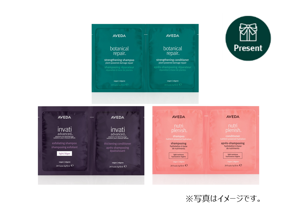 アヴェダで人気の3シリーズのサンプル(各1点)をプレゼントいたします。