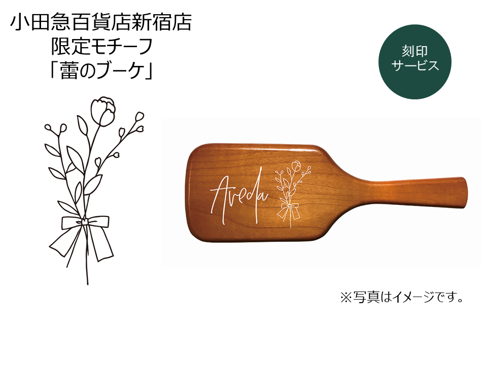 さらに、ブラシ以外の製品が税込3,300円以上の場合、「お名前+小田急百貨店新宿店限定モチーフ(蕾のブーケ)」を刻印させていただきます。