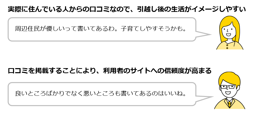 「地域の口コミ提供サービス」をサイトに掲載することで、以下のようなメリットが考えられます。