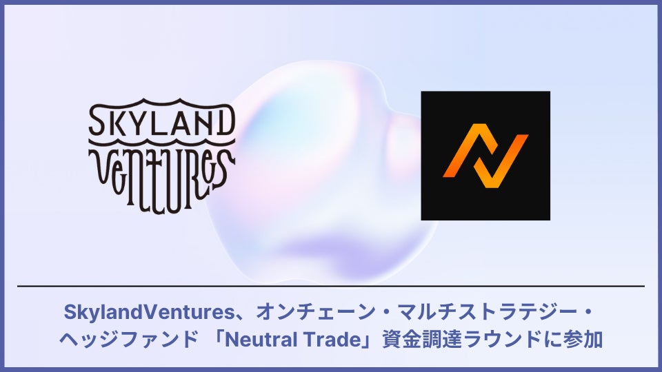 シードスタートアップへの投資をメインに行うベンチャーキャピタルファンド、Skyland Ventures(本社:東京都渋谷区、General Partner・CEO:木下慶彦、以下SV)は、オンチェーン・マルチストラテジー・ヘッジファンド 「Neutral Trade」の資金調達ラウンドに参加したことをお知らせします。