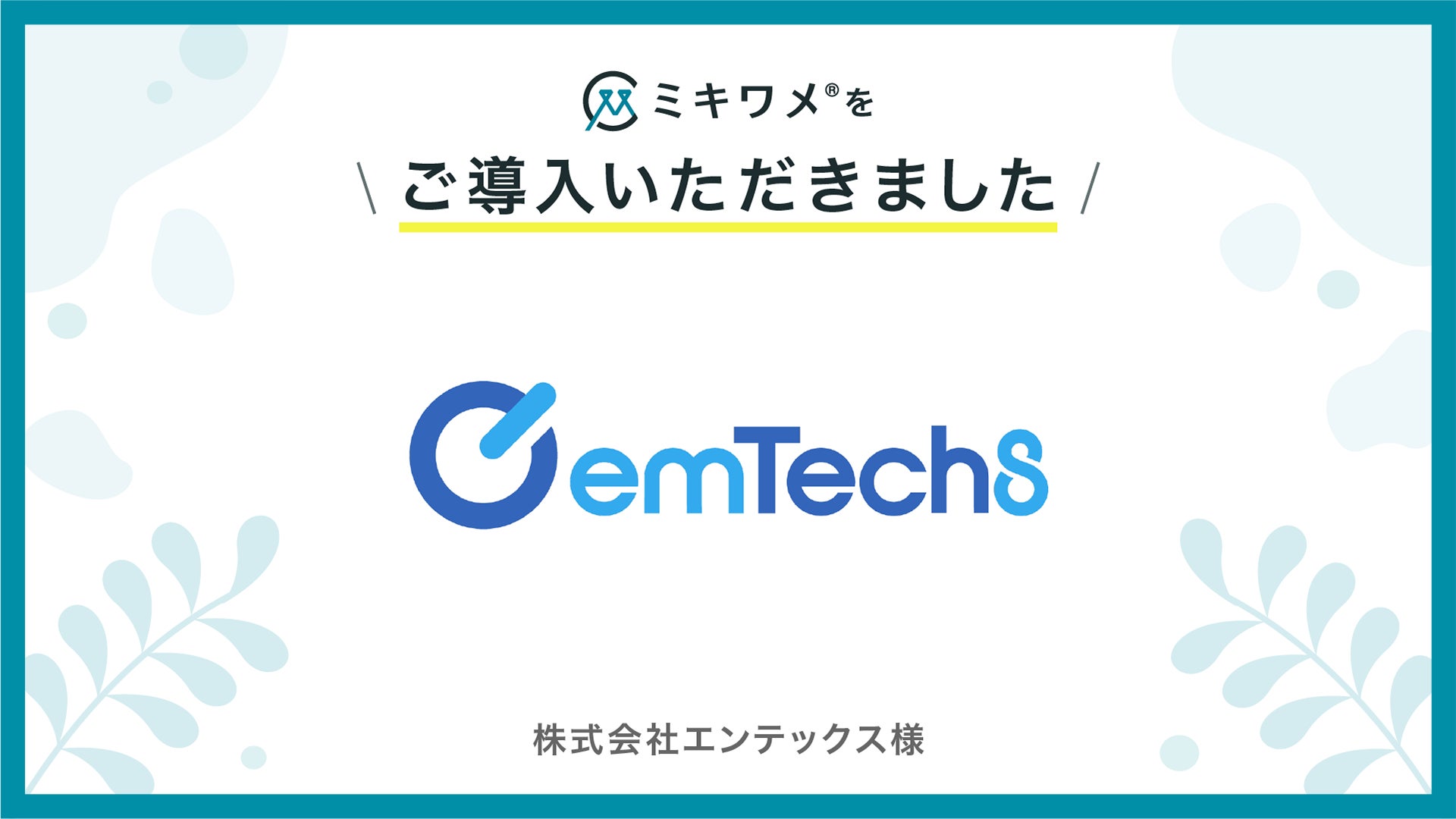 今回、株式会社エンテックスで「ミキワメ」が正式導⼊されました。