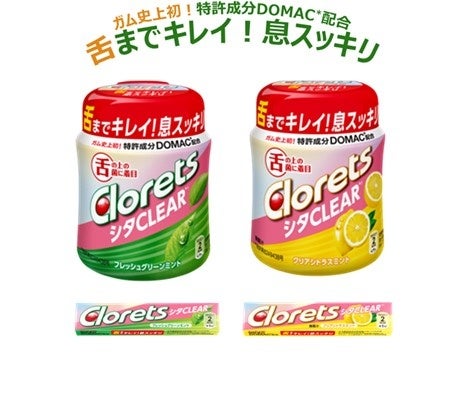 舌苔とは、細菌や食べかす、はがれた粘膜などが舌の表面に付着してできるもの。これが菌の温床となり、「息のトラブル」の原因にもなります。「クロレッツ シタCLEAR」は、この舌苔に着目し、ガム史上初となる食品成分からできたアロマ成分複合体の「DOMAC(ドゥーマック)」を配合。「DOMAC」は、①口腔内のトラブルの原因ともいわれるバイオフィルムにアプローチ、②舌苔クリアをサポート、③舌キレイの持続パワー、の3つのチカラで舌の汚れに働きかけます。