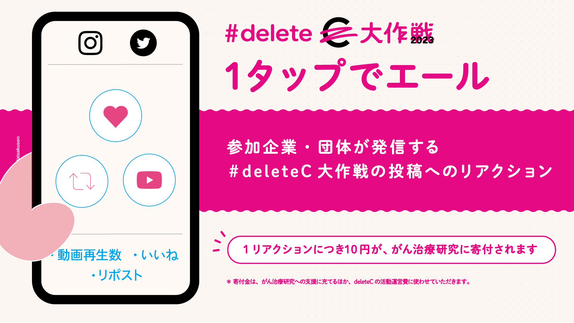 当社の「#deleteC大作戦」への参加は今年で3回目となります。プロジェクトへの参加を通じて、がんを治せる病気にする日を1日も早く手繰り寄せ、多くの方のポジティブな未来と笑顔を増やすことに貢献いたします。