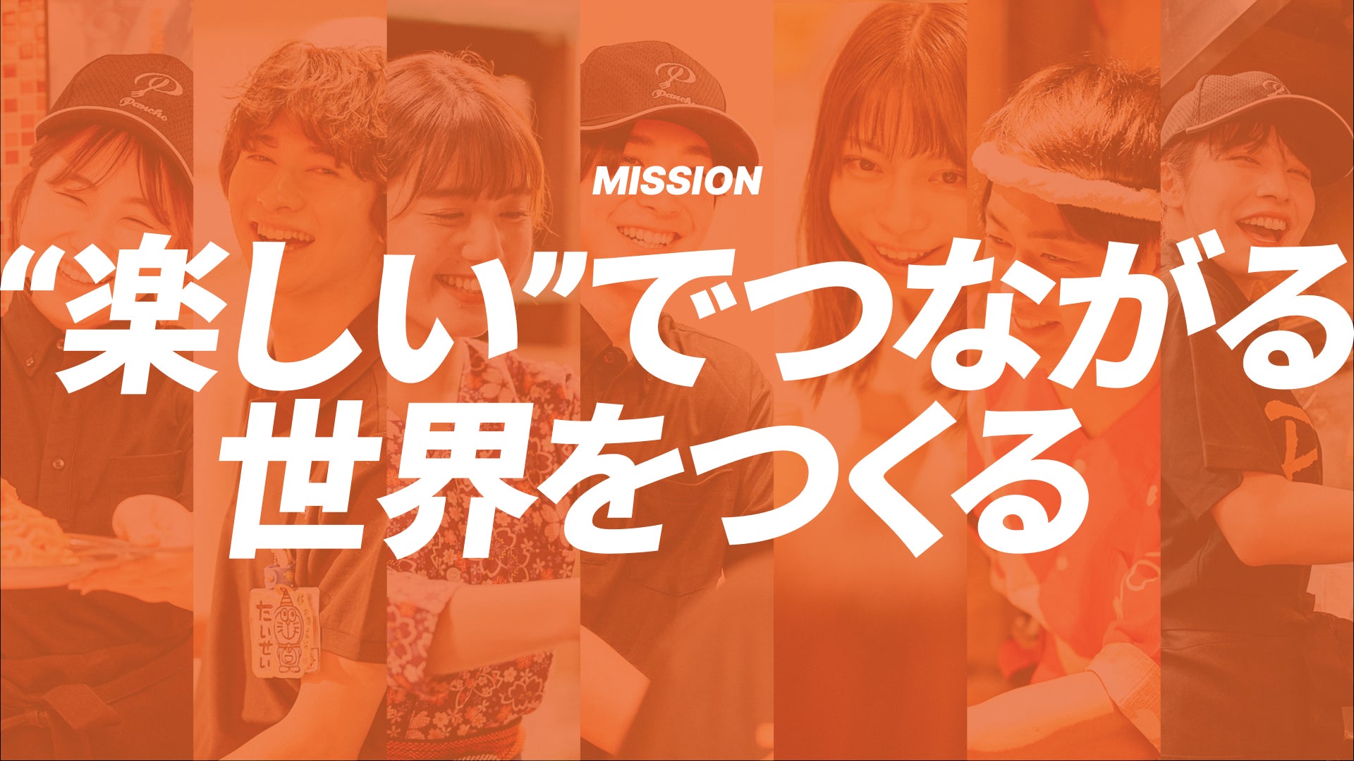 お客様と人として向き合うことを通じて 働きがいのある環境を自らつくり、食とコミュニケーションを通じて「楽しい」を発信し、拡げていく。そんな人と人、感情と感情を結んでく、「楽しい」の力で人と社会を力づけていく21世紀を代表する飲食カンパニーになることをファイブグループは目指しています。