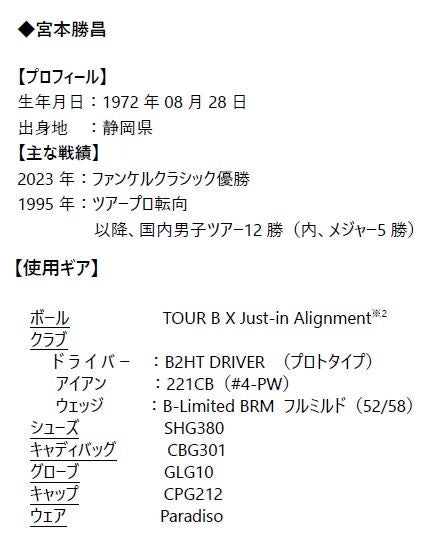 この度は、福岡シニアで今シーズン2勝目を飾ることができ、最高の気分です。これもひとえに日頃から応援いただいている方々のお陰かと思います。また、最終日62の好スコアをマークし、優勝につなげられたのは、ニュードライバー、B2 HTの飛びと方向性を兼ね備えた性能と、TOUR B Xボールの高いコントロール性能の素晴らしさにあったかと思います。これからも応援よろしくお願い致します。