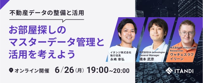 <不動産データの整備と活用>6/26(月)19:00~ウェビナー実施!お部屋探しのマスターデータマネジメントと活用を考えよう