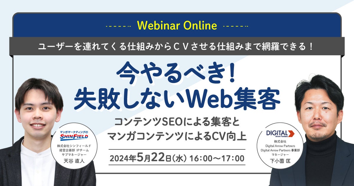 Digital Arrow Partners、シンフィールドとの共催で“今やるべき!失敗しないWeb集客”ウェビナーを開催