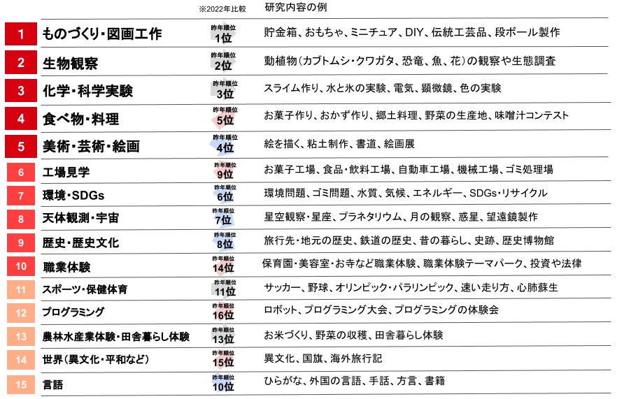 2023年夏休みの自由研究テーマ 1位人気は2年連続で「ものづくり・図画工作」に。